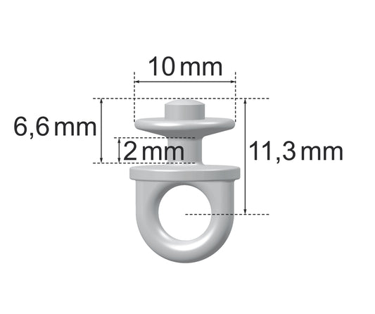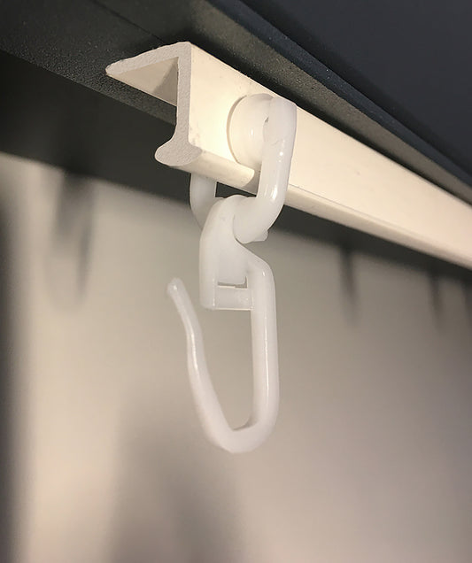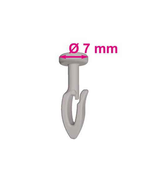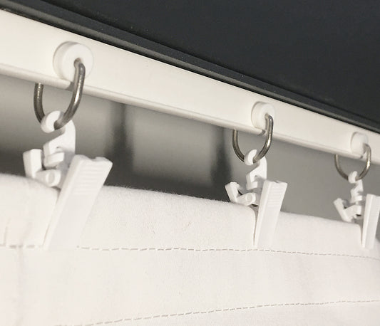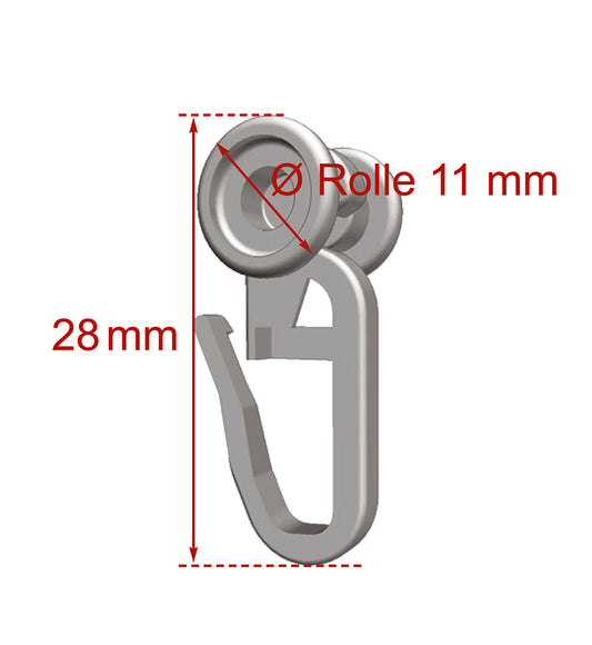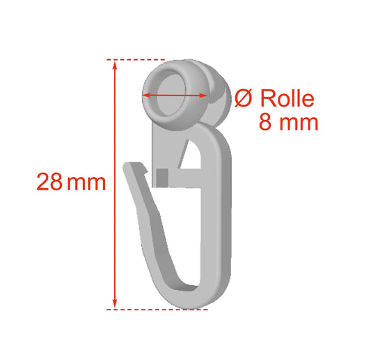 Gardinenrolle mit Faltenhaken – Innenlaufrolle, Rollringe Ø 8 mm halbrund, 100 Stück