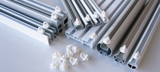 Universal Feststeller für Vorhangschienen, flexibles Material, besonders leichtes Eindrehen